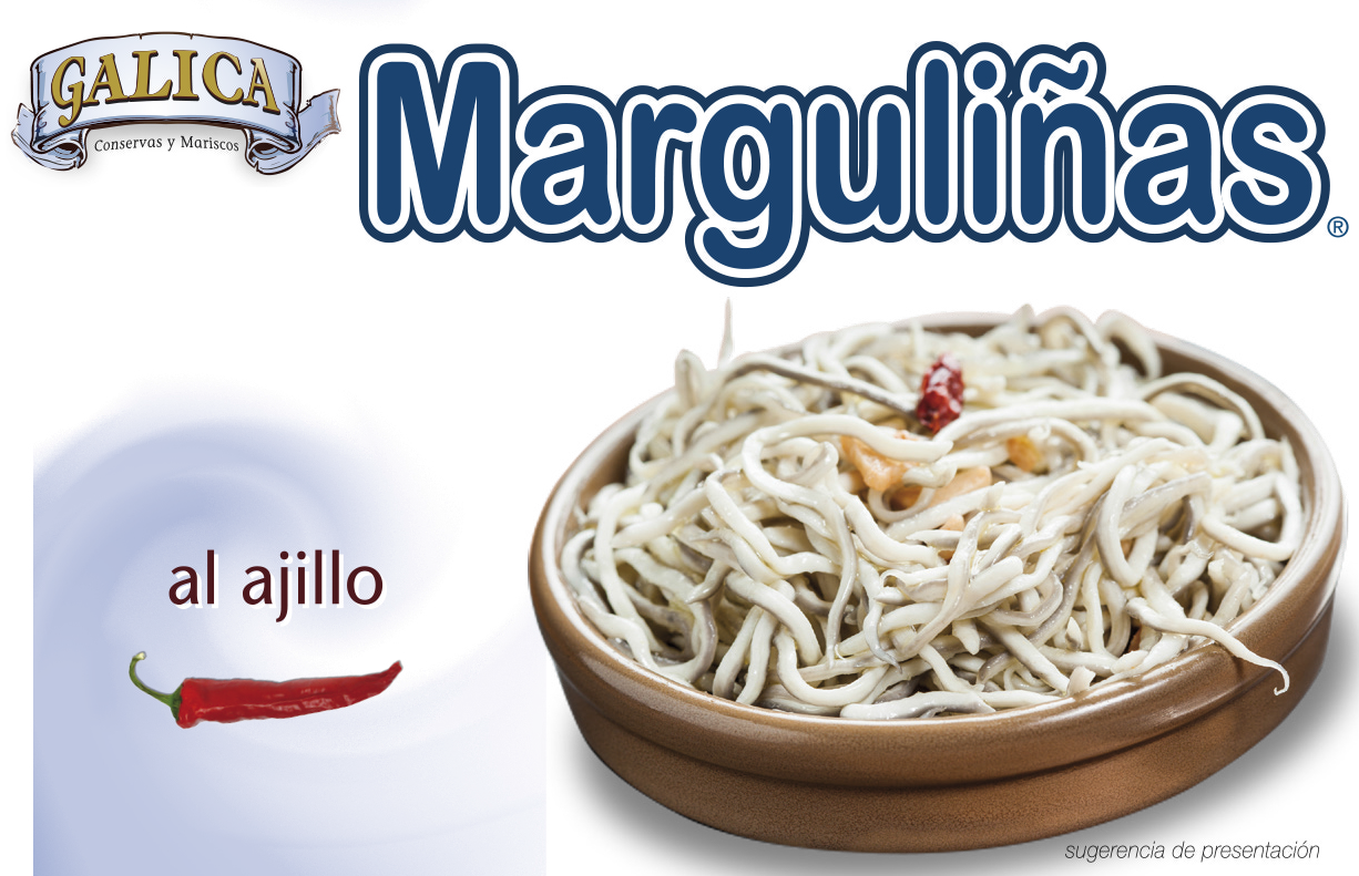 INGREDIENTES: Surimi (carne de pescado, agua, albúmina de huevo, sal, aceite de girasol, tinta de cefalópodo y aroma), cayena y aroma natural de ajo.
